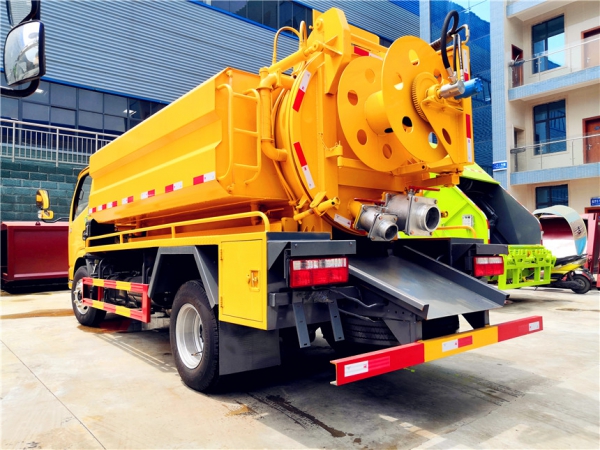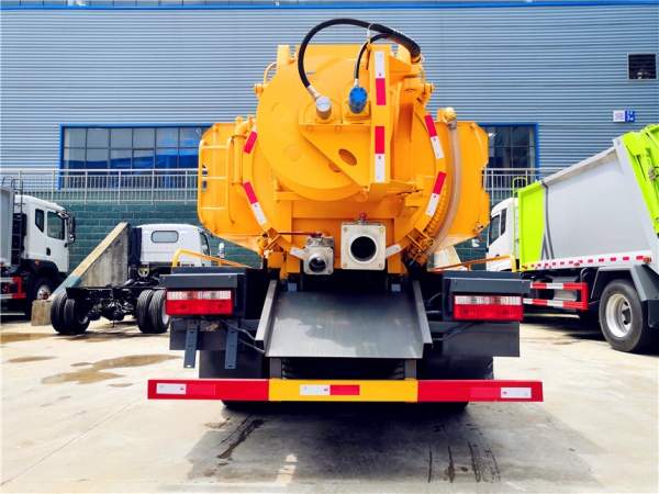 吸污部分:3.8方污罐,罐體5mmQ235優(yōu)質(zhì)碳鋼,配淄博SK-9水循環(huán)泵(北方地區可選裝真空油泵),8米吸污管一根,進(jìn)氣管加過(guò)濾網(wǎng),防溢閥加高,后蓋卡扣鎖緊,前視污亮管,后尾部加裝1個(gè)力拓牌**mm、150mm的球閥均帶進(jìn)出口,罐體帶舉升功能,后門(mén)帶液壓開(kāi)啟。