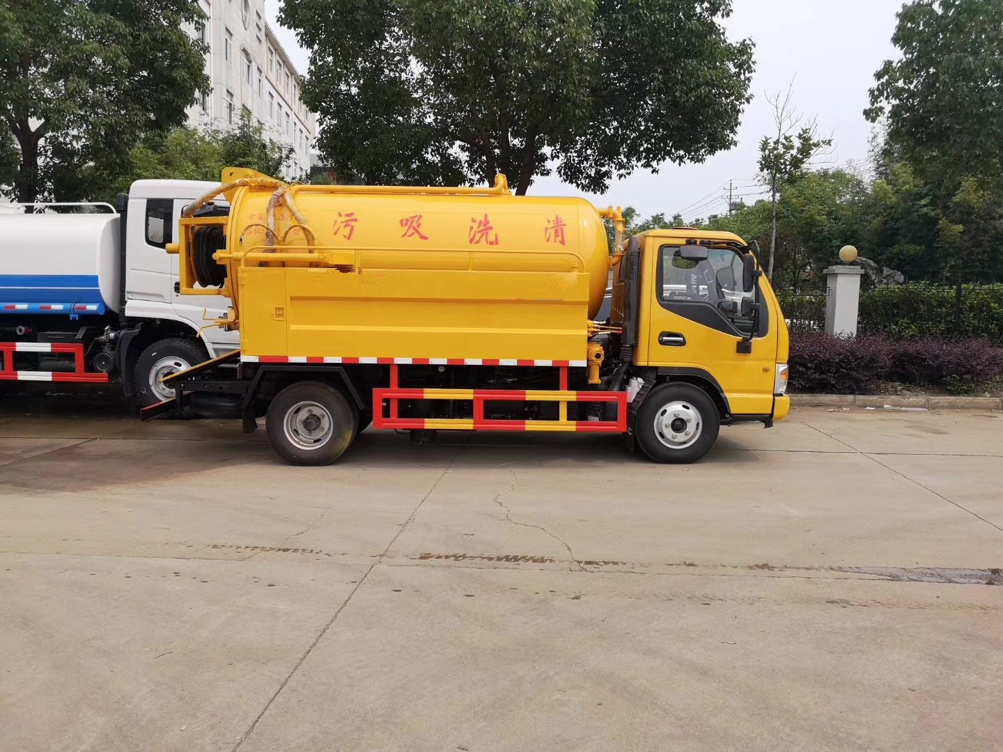 2、高壓清洗車(chē)可加裝灑水裝置,安裝綠化灑水炮、前沖、后灑、側噴,可進(jìn)行綠化灑水、噴霧、 壓塵、高壓沖洗路面、下水道、管道的沉積物、死角泥溝的疏通。還可加裝吸污功能,集清洗、吸 污于一體。