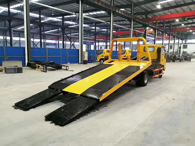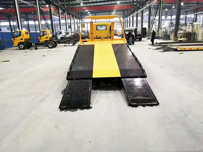 平板采用3PL折疊沖壓式平板,一拖二型,雙側聯(lián)動(dòng)操作裝置??杀?噸,拖3噸,后托臂可托舉2噸。多路閥、平衡閥采用進(jìn)口液壓件(意大利海德) 后工作燈3只,1個(gè)40KN液壓絞盤(pán)(25米鋼絲繩),1個(gè)工具箱,配2個(gè)小車(chē),L型抱胎架1對,6根捆綁帶,托叉1對,托叉座1對。鏈鉤1條。后托舉機構(可拆卸),主板長(cháng)4.2米。