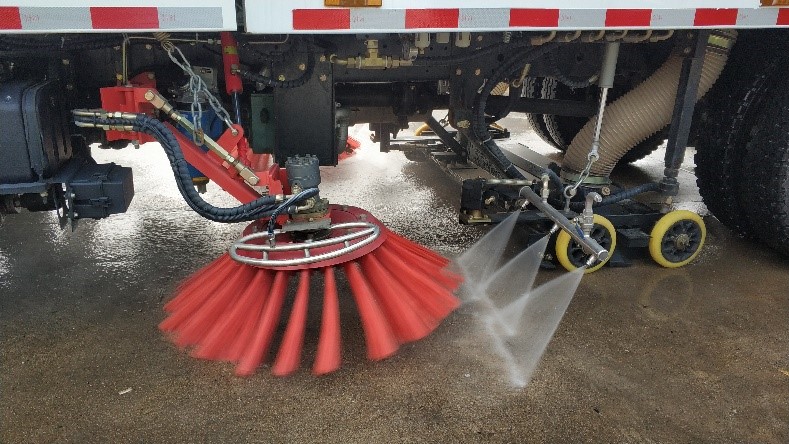 ![]() | 駕駛室后下方標配低壓前沖,由低壓水泵 產(chǎn)生的水流,可以像灑水車(chē)一樣對路面進(jìn)行大 面積沖洗,沖洗寬度可達16米。 |