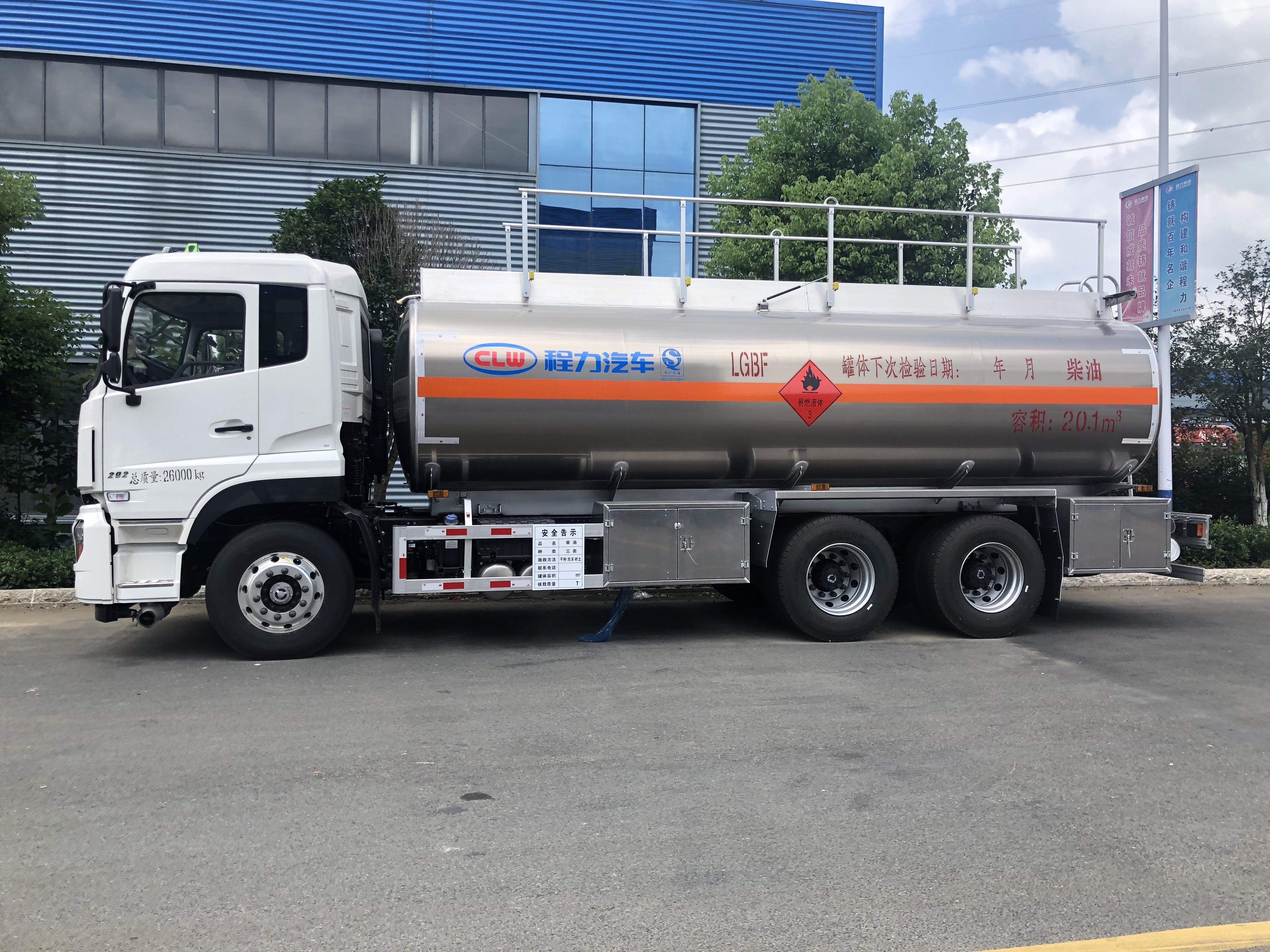 上裝配置:罐體公告容積:25.6立方米,實(shí)際容積28立方米,采用優(yōu)質(zhì)鋁合金板材,帶泵可自吸自排,通倉,方圓形罐體,帶山東申威齒輪泵(管路3寸,出口2.5寸,帶濾網(wǎng)),帶歐標下裝油系統(帶歐標罐口,海底閥,下裝油口,防溢流探桿及探座,油氣回收系統,罐頂兩側折疊護欄),帶大流量加油機(品牌可選),帶15米自動(dòng)回位卷盤(pán)及加油**,正后尾部安裝緊急切斷開(kāi)關(guān),帶海底閥5公里/H自動(dòng)開(kāi)關(guān)裝置,罐體正后一把爬梯,卸料管和炮筒與罐體一樣長(cháng),安全告示牌,2公斤滅火器2個(gè),靜電帶,防火帽,堵蓋,罐體顏色為銀粉色,罐體防滑網(wǎng),貼3M反光條,反光帶,安裝反光板,“易燃液體”字,嚴格保證公告罐體及外形尺寸,按照公告圖片制作,出具湖北省特檢院罐體檢測報告,其他按廠(chǎng)標。