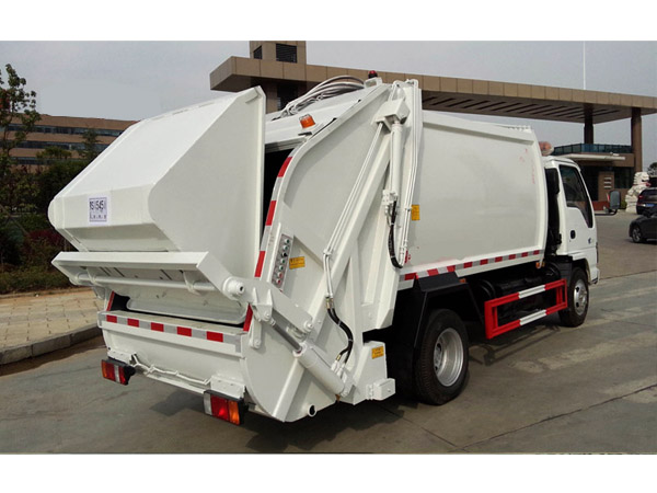 慶鈴4噸壓縮式垃圾車(chē)上裝配置:壓縮垃圾箱體,改進(jìn)型外觀(guān)設計,液壓動(dòng)力,電控操作,方便可靠,容積4-5方,帶污水收集箱。