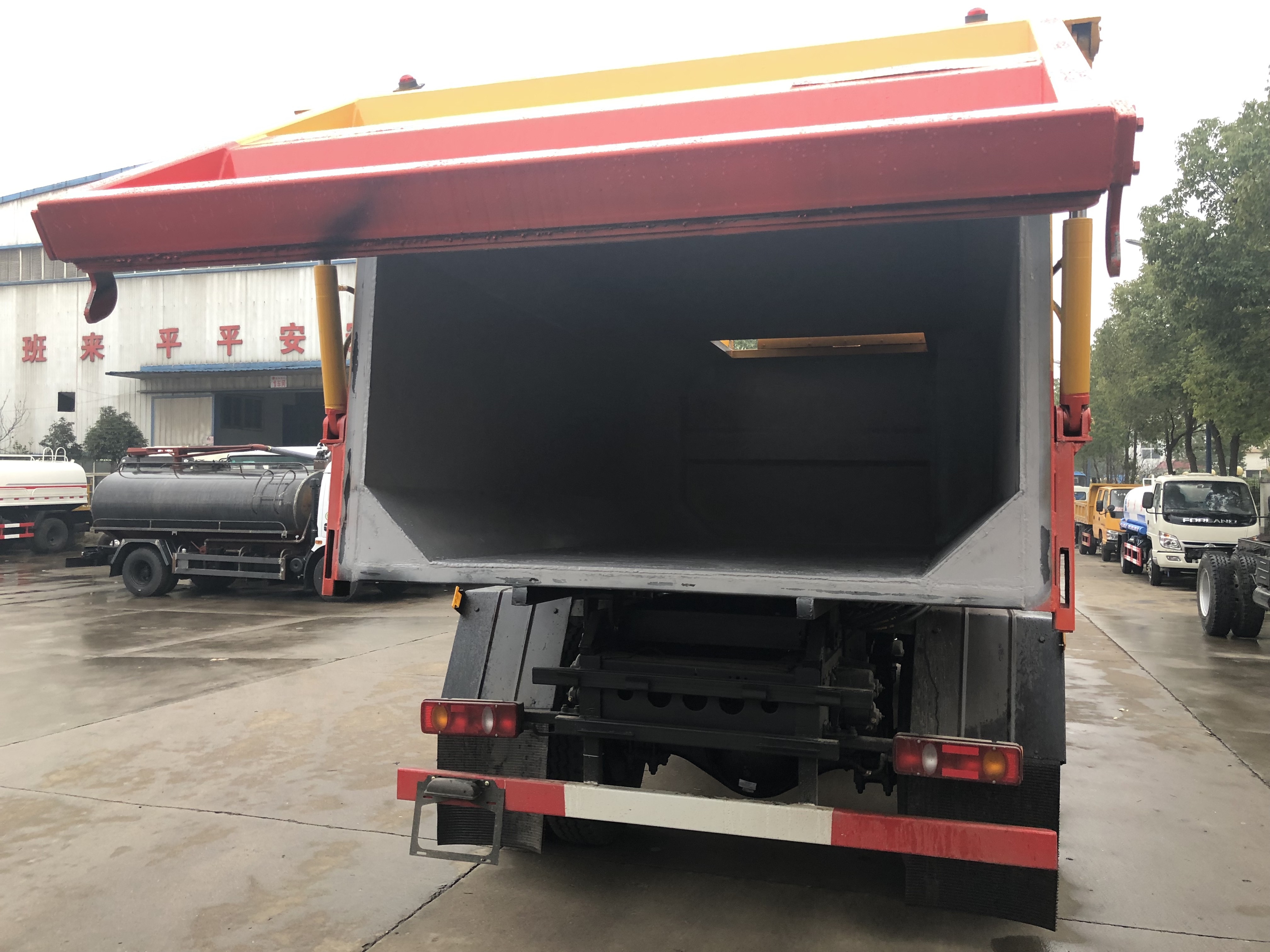 3.垃圾箱在制造上采用武鋼產(chǎn)優(yōu)質(zhì)鋼板,箱底板可加裝不銹鋼鋼板,保證介質(zhì)自卸時(shí)的平滑性,同時(shí)箱底可根據地區的季節溫度情況加裝防冰凍設置,保障車(chē)輛的正常運行。密封垃圾箱內加裝推板,保證其卸料干凈。