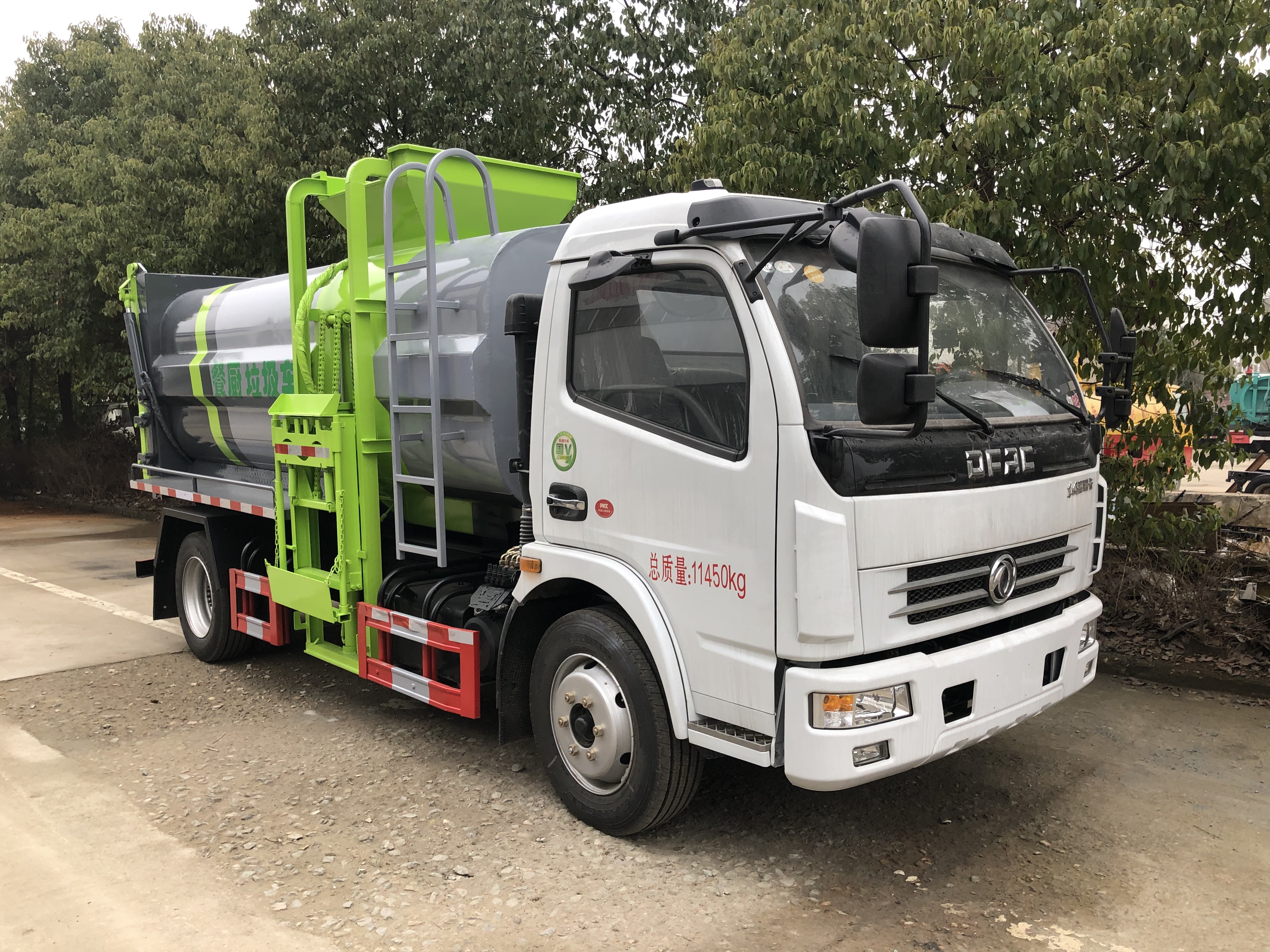 配置:10方圓形箱體,箱體材質(zhì)為6mm碳鋼,液壓后蓋,后蓋帶密封條,后門(mén)液壓鎖緊,拉桿提升機帶上蓋聯(lián)動(dòng),可掛120L/240L標準塑料垃圾桶。