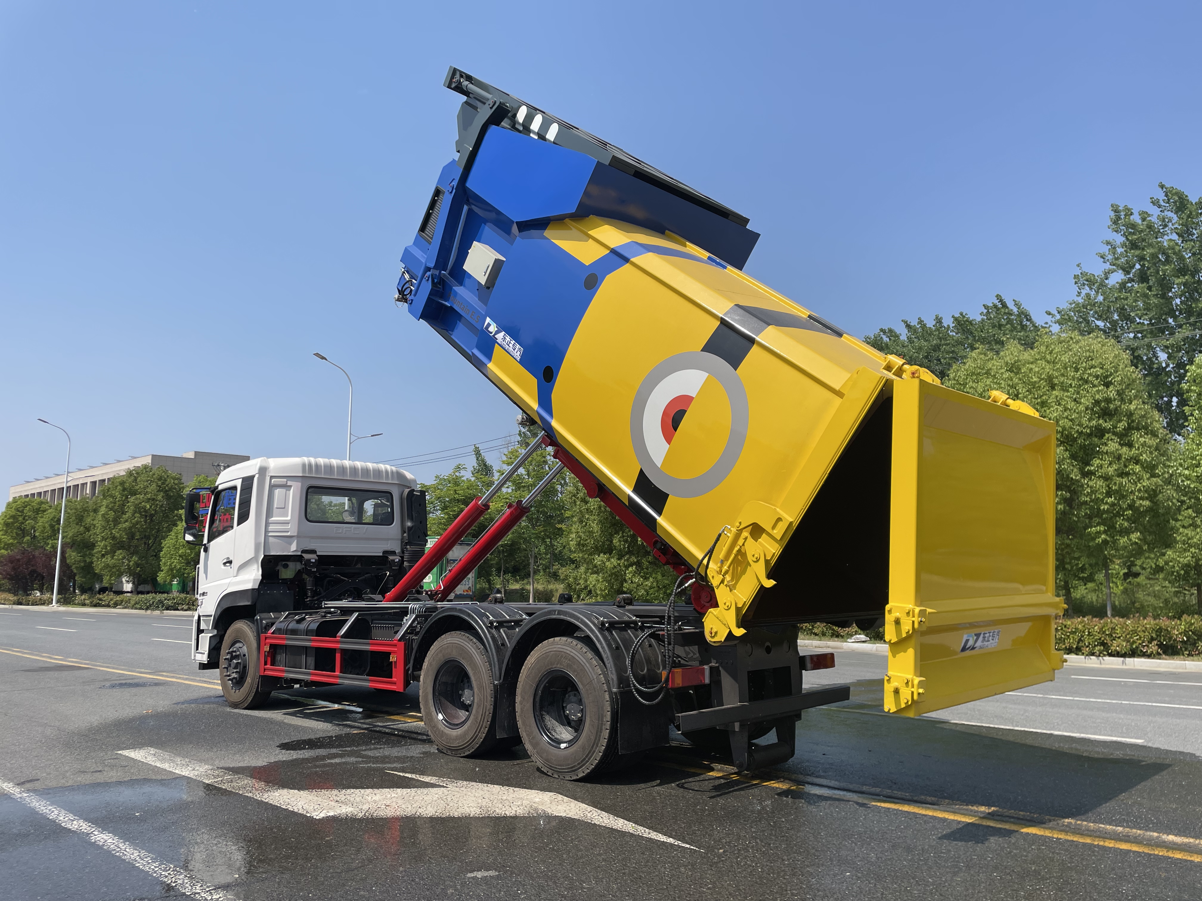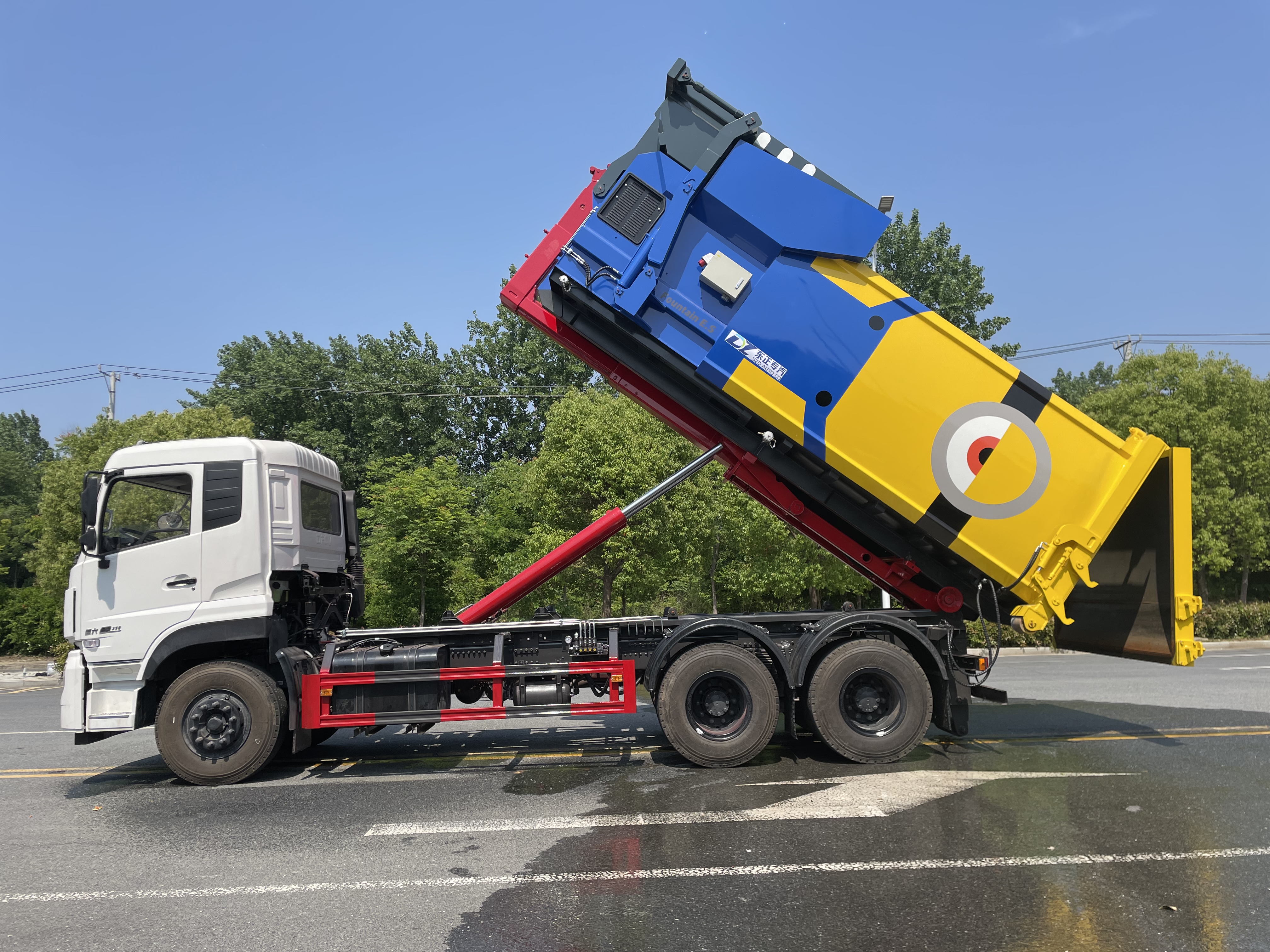 大運5方勾臂式垃圾車(chē)試車(chē)中